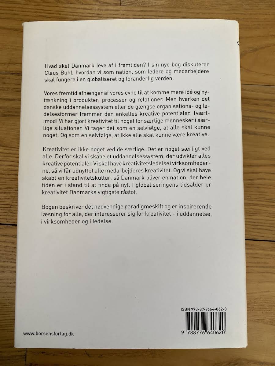 I Kreativitet: Danmarks vigtigste råstof præsenterer Claus Buhl en engageret og tankevækkende analyse af, hvordan både stat, kommune, virksomheder og enkeltpersoner kan understøtte den nødvendige udvikling af kreative processer i Danmark. Bogen udforsker, hvordan rammerne for innovation skal styrkes i folkeskolen, på universiteter og i erhvervslivet for at fastholde Danmarks position som frontløber. Med skarpe observationer og et provokerende blik på vores nuværende systemer understreger Buhl vigtigheden af, at kreative og innovative individer får mulighed for at udfolde sig i alle dele af samfundet. Han argumenterer for, at en forankring af kreativitet i både kultur og arbejdsliv er afgørende for at imødekomme den globale konkurrence, især i en tid hvor asiatiske virksomheder udfordrer de etablerede markedspositioner. Gennem bogen opfordres læseren til at tænke nyt omkring, hvordan vi kan skabe en bæredygtig fremtid, hvor kreativitet bliver en integreret del af vores samfundsstruktur og vækst.