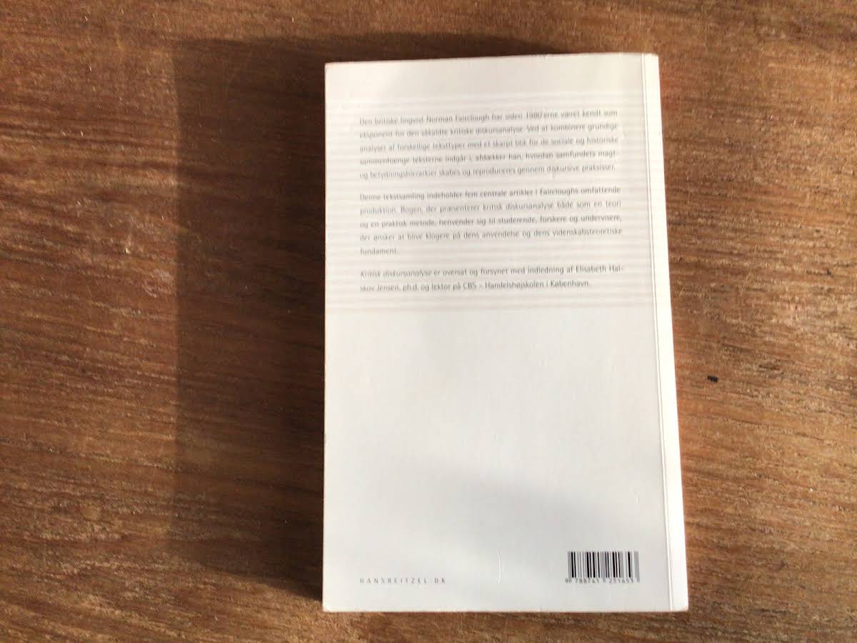 Norman Faircloughs "Kritisk diskursanalyse" samler et udvalg af centrale tekster, der belyser, hvordan sprog og diskursive praksisser er med til at skabe og reproducere magtstrukturer i samfundet. Bogen præsenterer en tilgang, hvor teoretiske betragtninger kombineres med praktisk analyse, og tilbyder dermed et solidt grundlag for forståelsen af, hvordan sociale og historiske kontekster former vores kommunikation. Med udgangspunkt i Faircloughs anerkendte teoretiske rammeværk, udforsker denne tekstsamling, hvordan meningsdannelse og betydningsskabelse kan diskuteres ud fra en kritisk vinkel. "Kritisk diskursanalyse" henvender sig til studerende, undervisere og forskere, der ønsker at dykke ned i, hvordan diskursive praksisser påvirker vores hverdag, og hvordan de kan analyseres både teoretisk og metodisk. Bogen blev udgivet som paperback af Hans Reitzels Forlag i 2008 og omfatter 204 sider, der alle bidrager til en nuanceret forståelse af kritisk diskursanalyse.