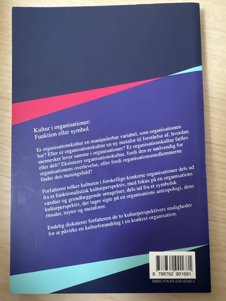 I "Kultur i organisationer" udforsker Majken Schultz de mange facetter af organisationskultur og stiller skarpt på, om den kan ses som en manipulerbar variabel eller som en indsigtsfuld metafor for, hvordan mennesker interagerer i organisationer. Bogen belyser kulturen ud fra to hovedperspektiver: et funktionalistisk perspektiv med fokus på en organisations værdier og grundantagelser samt et symbolsk perspektiv, der kaster lys over de underliggende ritualer, myter og metaforer. Gennem analysen af konkrete organisationer diskuterer forfatteren, hvordan disse to tilgange kan spille en afgørende rolle i at forme og ændre en virksomheds kultur. Med et nuanceret blik præsenterer Schultz de muligheder, som både det funktionalistiske og symbolske kulturperspektiv tilbyder for at skabe en positiv kulturforandring.
