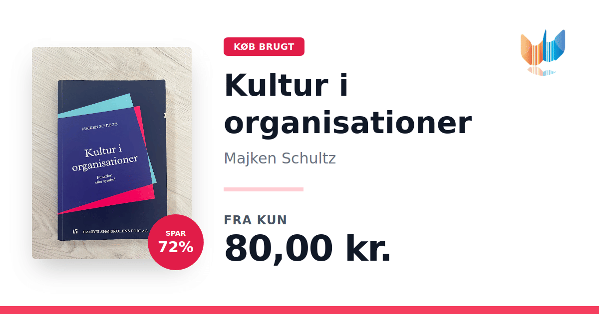 • Kultur i organisationer, Majken Schultz, Handelshøjskolen i København. Institut for Organisation og Arbejdssociologi, 9788762901681