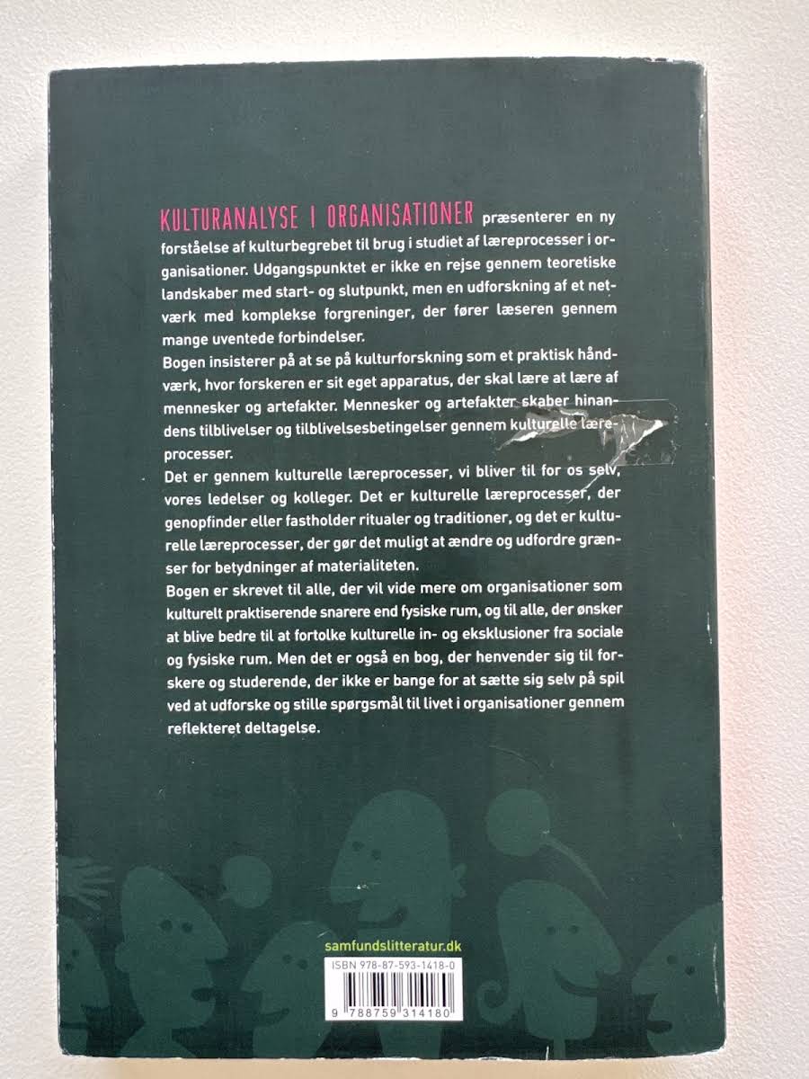 Kulturanalyse i organisationer af Cathrine Hasse præsenterer en nyskabende tilgang til kulturbegrebet i studiet af organisationers læreprocesser. Bogen udforsker, hvordan kultur bliver en aktiv del af den organisatoriske praksis, og viser, hvordan man gennem reflekteret deltagelse kan opnå en dybere forståelse af, hvordan menneskelige relationer og artefakter former fællesskaber. Med udgangspunkt i praktisk kulturforskning henvender bogen sig til alle, der ønsker at se organisationer som dynamiske kulturelle rum snarere end blot fysiske strukturer. Cathrine Hasse giver læseren redskaberne til selv at stille kritiske spørgsmål og engagere sig i den komplekse virkelighed, der udspiller sig i organisationernes dagligdag.