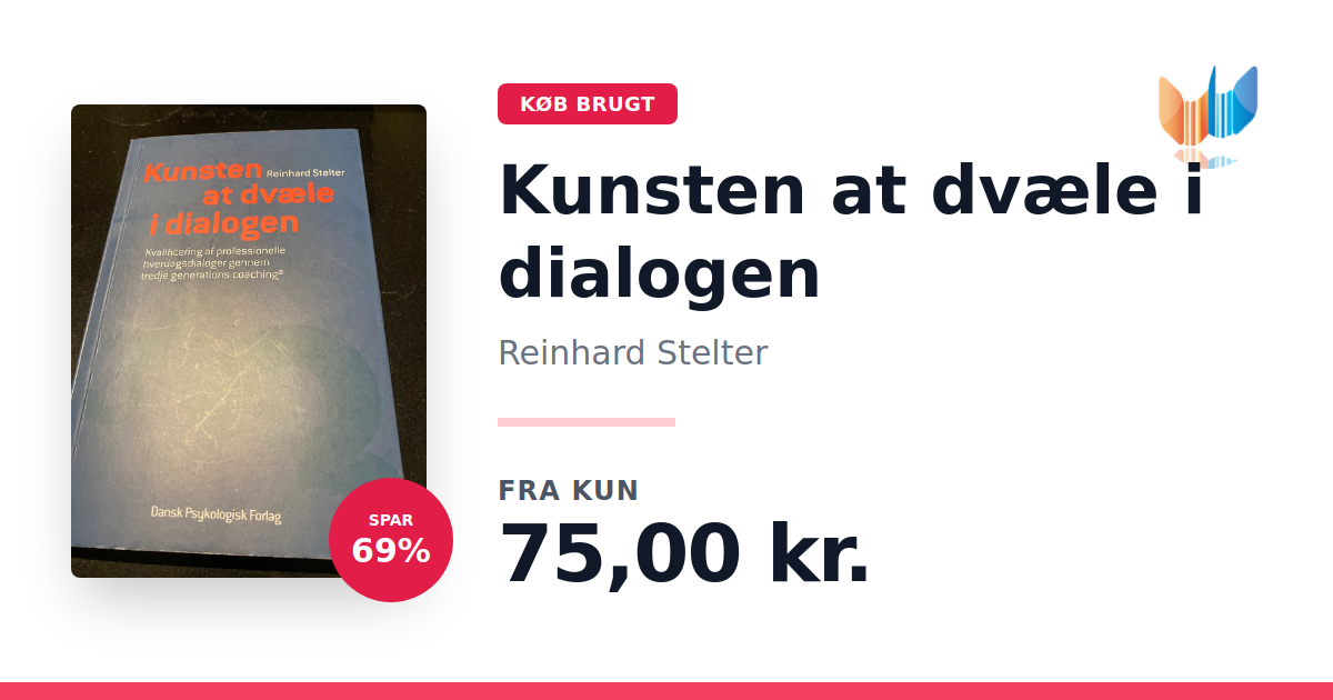 Lige nu kan du købe "Kunsten at dvæle i dialogen" af Reinhard Stelter til kun 75,00 kr. Du sparer hele 69% af nyprisen! Bogen du ser her er brugt, og i god stand. Vi har i øjeblikket kun et enkelt eksemplar til salg af "Kunsten at dvæle i dialogen", så slå til mens du kan!