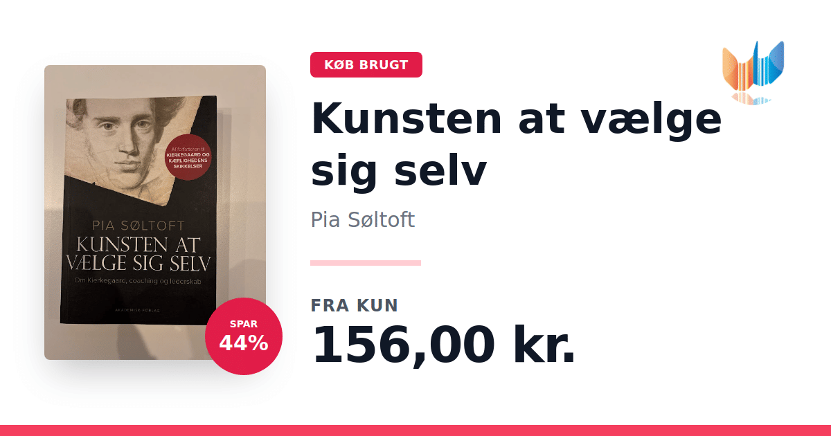 Lige nu kan du købe "Kunsten at vælge sig selv" af Pia Søltoft til kun 156,00 kr. Du sparer hele 44% af nyprisen! Bogen du ser her er brugt, og i perfekt stand. Vi har i øjeblikket kun et enkelt eksemplar til salg af "Kunsten at vælge sig selv", så slå til mens du kan!