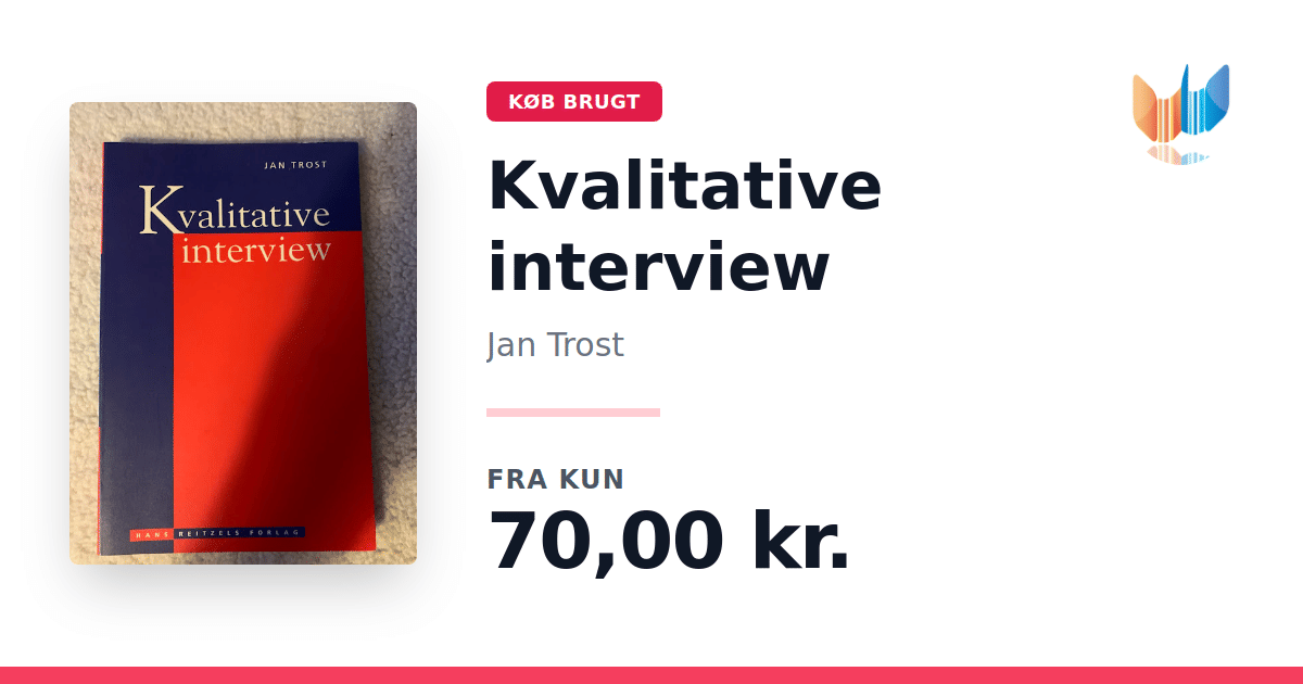 Lige nu kan du købe "Kvalitative interview" af Jan Trost til kun 70,00 kr. Bogen du ser her er brugt, og i god stand. Vi har i øjeblikket kun et enkelt eksemplar til salg af "Kvalitative interview", så slå til mens du kan!