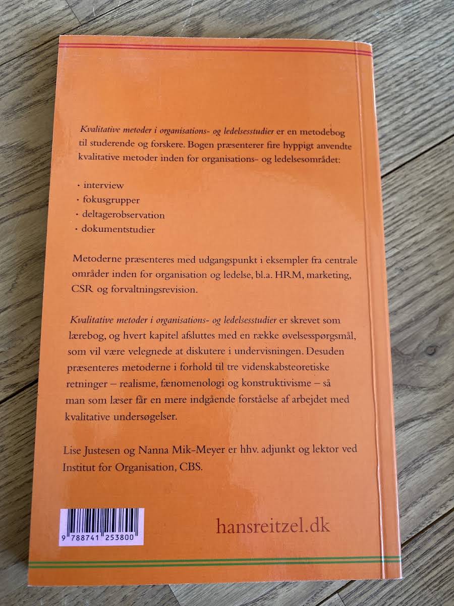 Kvalitative metoder i organisations- og ledelsesstudier er en metodebog for både studerende og forskere, som præsenterer de fire mest anvendte kvalitative metoder inden for organisation og ledelse: interview, fokusgrupper, deltagerobservation og dokumentstudier. Bogen illustrerer metoderne med praktiske eksempler fra centrale områder såsom HRM, marketing, CSR og forvaltningsrevision – og giver dermed et godt udgangspunkt for at forstå, hvordan kvalitative metoder kan anvendes i praksis. Bogen er opbygget som en lærebog, hvor hvert kapitel afsluttes med øvelsesspørgsmål, der inspirerer til refleksion og diskussion. Desuden belyses metoderne ud fra tre videnskabsteoretiske retninger – realisme, fænomenologi og konstruktivisme – hvilket bidrager til en nuanceret tilgang til kvalitative undersøgelser. Lise Justesen og Nanna Mik-Meyer giver med denne udgivelse et værdifuldt redskab til at navigere i organisations- og ledelsesforskningens verden.