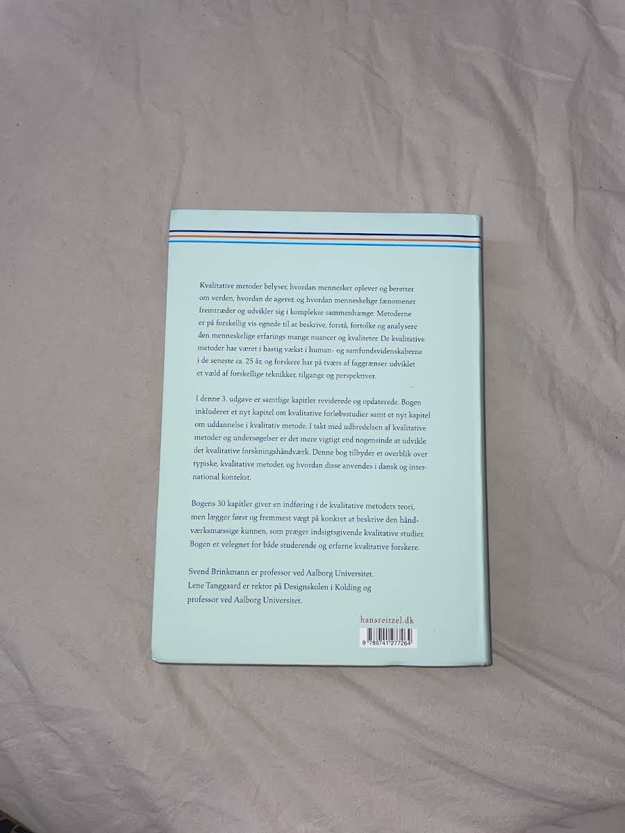 Kvalitative metoder – En grundbog giver en grundlæggende introduktion til, hvordan menneskers oplevelser og fortællinger kan beskrives, forstås og analyseres. Bogen illustrerer, hvordan kvalitative tilgange belyser de mange nuancer i den menneskelige erfarings verden og de komplekse sammenhænge, som præger vores dagligdag. I denne tredje udgave er samtlige kapitler reviderede og opdaterede for at afspejle den hastige udvikling inden for feltet. Blandt de nye tilføjelser finder vi et kapitel om kvalitative forløbsstudier samt et om uddannelse i den kvalitative metode, der understøtter en fornyet forståelse af forskningshåndværket. Med sine 30 kapitler præsenterer bogen både teoretiske perspektiver og praktiske metoder, som gør den til et uundværligt redskab for studerende og erfarne forskere, der ønsker at styrke deres kvalitative arbejdsmetoder.