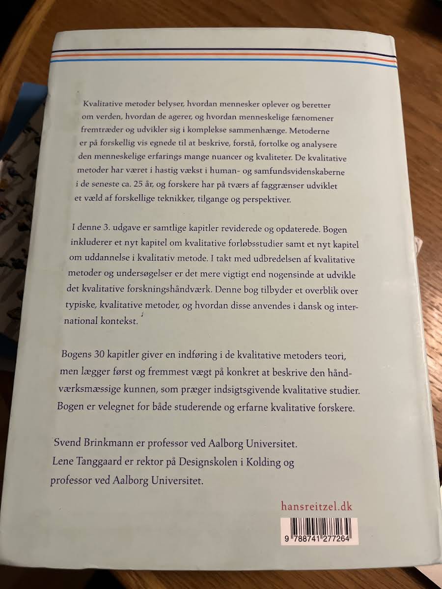 Kvalitative metoder – En grundbog giver en grundlæggende introduktion til, hvordan menneskers oplevelser og fortællinger kan beskrives, forstås og analyseres. Bogen illustrerer, hvordan kvalitative tilgange belyser de mange nuancer i den menneskelige erfarings verden og de komplekse sammenhænge, som præger vores dagligdag. I denne tredje udgave er samtlige kapitler reviderede og opdaterede for at afspejle den hastige udvikling inden for feltet. Blandt de nye tilføjelser finder vi et kapitel om kvalitative forløbsstudier samt et om uddannelse i den kvalitative metode, der understøtter en fornyet forståelse af forskningshåndværket. Med sine 30 kapitler præsenterer bogen både teoretiske perspektiver og praktiske metoder, som gør den til et uundværligt redskab for studerende og erfarne forskere, der ønsker at styrke deres kvalitative arbejdsmetoder.