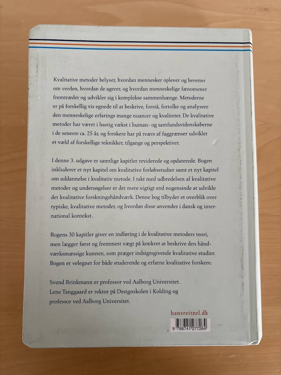 Kvalitative metoder – En grundbog giver en grundlæggende introduktion til, hvordan menneskers oplevelser og fortællinger kan beskrives, forstås og analyseres. Bogen illustrerer, hvordan kvalitative tilgange belyser de mange nuancer i den menneskelige erfarings verden og de komplekse sammenhænge, som præger vores dagligdag. I denne tredje udgave er samtlige kapitler reviderede og opdaterede for at afspejle den hastige udvikling inden for feltet. Blandt de nye tilføjelser finder vi et kapitel om kvalitative forløbsstudier samt et om uddannelse i den kvalitative metode, der understøtter en fornyet forståelse af forskningshåndværket. Med sine 30 kapitler præsenterer bogen både teoretiske perspektiver og praktiske metoder, som gør den til et uundværligt redskab for studerende og erfarne forskere, der ønsker at styrke deres kvalitative arbejdsmetoder.