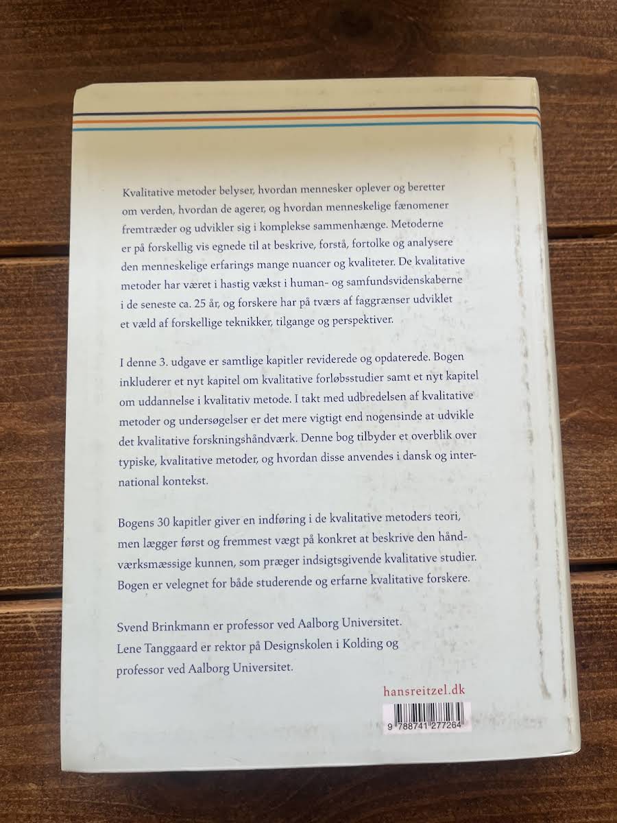 Kvalitative metoder – En grundbog giver en grundlæggende introduktion til, hvordan menneskers oplevelser og fortællinger kan beskrives, forstås og analyseres. Bogen illustrerer, hvordan kvalitative tilgange belyser de mange nuancer i den menneskelige erfarings verden og de komplekse sammenhænge, som præger vores dagligdag. I denne tredje udgave er samtlige kapitler reviderede og opdaterede for at afspejle den hastige udvikling inden for feltet. Blandt de nye tilføjelser finder vi et kapitel om kvalitative forløbsstudier samt et om uddannelse i den kvalitative metode, der understøtter en fornyet forståelse af forskningshåndværket. Med sine 30 kapitler præsenterer bogen både teoretiske perspektiver og praktiske metoder, som gør den til et uundværligt redskab for studerende og erfarne forskere, der ønsker at styrke deres kvalitative arbejdsmetoder.