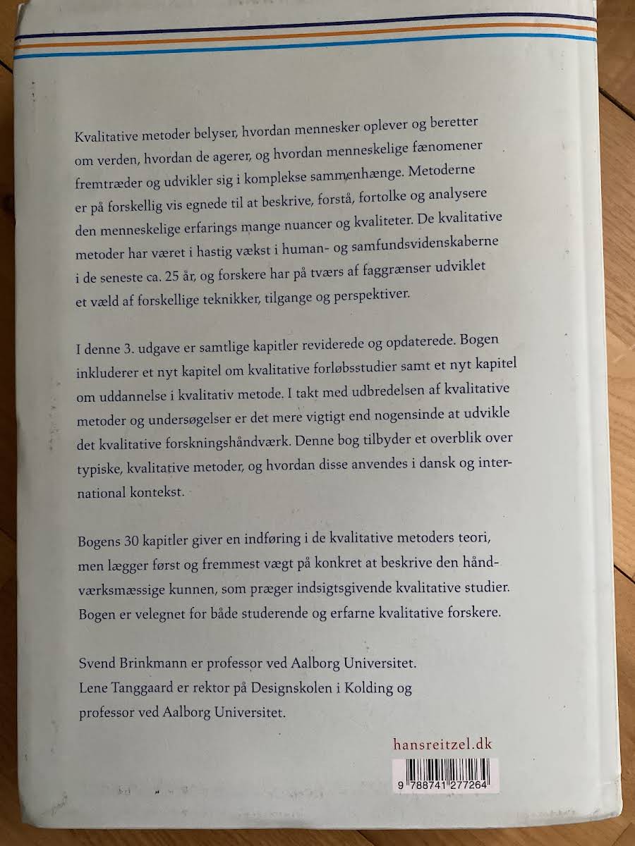 Kvalitative metoder – En grundbog giver en grundlæggende introduktion til, hvordan menneskers oplevelser og fortællinger kan beskrives, forstås og analyseres. Bogen illustrerer, hvordan kvalitative tilgange belyser de mange nuancer i den menneskelige erfarings verden og de komplekse sammenhænge, som præger vores dagligdag. I denne tredje udgave er samtlige kapitler reviderede og opdaterede for at afspejle den hastige udvikling inden for feltet. Blandt de nye tilføjelser finder vi et kapitel om kvalitative forløbsstudier samt et om uddannelse i den kvalitative metode, der understøtter en fornyet forståelse af forskningshåndværket. Med sine 30 kapitler præsenterer bogen både teoretiske perspektiver og praktiske metoder, som gør den til et uundværligt redskab for studerende og erfarne forskere, der ønsker at styrke deres kvalitative arbejdsmetoder.