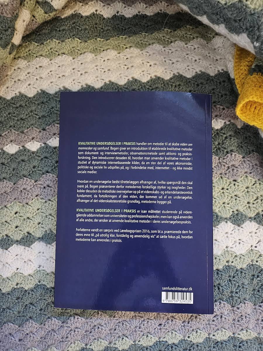 Kvalitative undersøgelser i praksis præsenterer metoder til at skabe viden om mennesker og samfund. Bogen introducerer en række etablerede kvalitative teknikker – fra dokument- og interviewmetoder til observationsmetoder samt aktions- og praksisforskning – med et særligt fokus på, hvordan man kan anvende disse i studiet af de dynamiske, internetbaserede kilder, der præger vores samfund. Bogen belyser, hvordan valget af metode afhænger af undersøgelsens specifikke spørgsmål, og diskuterer nøje de forskellige metoders styrker og svagheder. Samtidig sættes de metodiske overvejelser i spil i et solidt videnskabs- og erkendelsesteoretisk fundament, hvilket sikrer, at fortolkningen af resultaterne får en robust baggrund. Med sin klare og lettilgængelige tilgang henvender bogen sig primært til studerende på videregående uddannelser, men den er også et værdifuldt redskab for alle, der ønsker at anvende kvalitative metoder i deres egen undersøgelsespraksis.