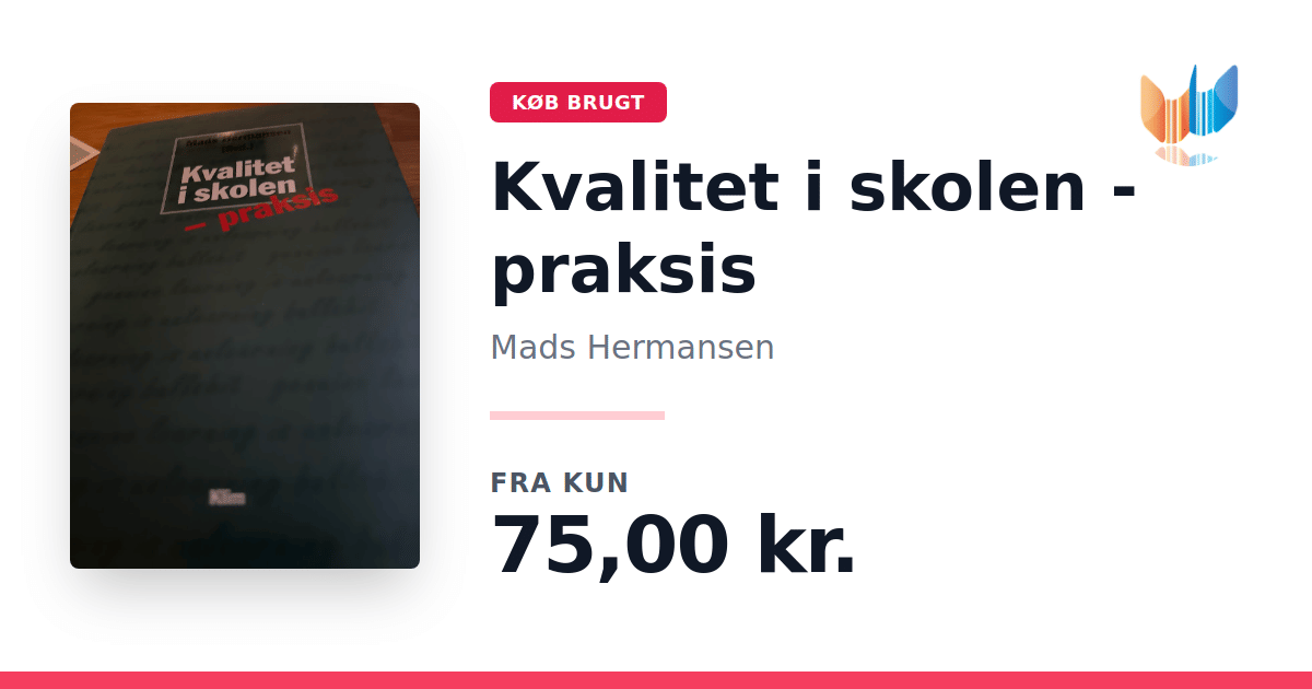 Lige nu kan du købe "Kvalitet i skolen - praksis" af Mads Hermansen til kun 75,00 kr. Bogen du ser her er brugt, og i god stand. Vi har i øjeblikket kun et enkelt eksemplar til salg af "Kvalitet i skolen - praksis", så slå til mens du kan!