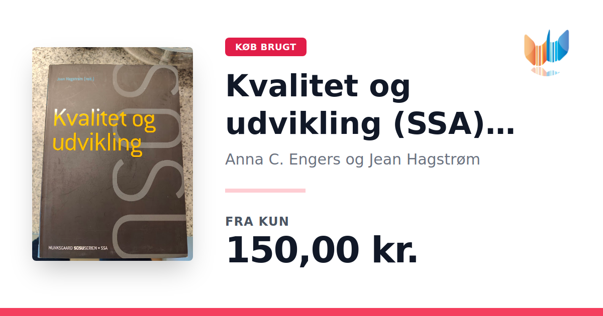 Lige nu kan du købe "Kvalitet og udvikling (SSA) (med iBog)" af Anna C. Engers og Jean Hagstrøm til kun 150,00 kr. Bogen du ser her er brugt, og i god stand. Vi har i øjeblikket kun et enkelt eksemplar til salg af "Kvalitet og udvikling (SSA) (med iBog)", så slå til mens du kan!