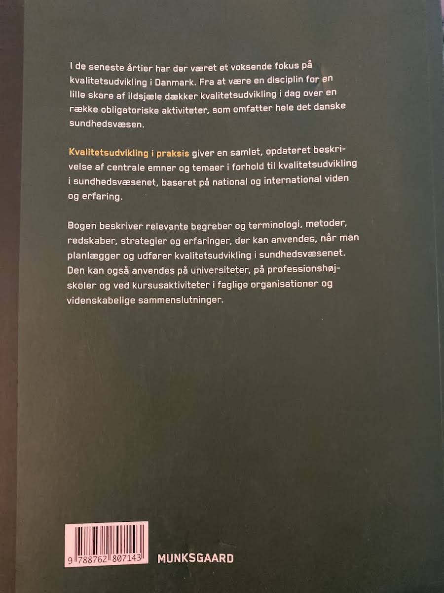 Kvalitetsudvikling i praksis giver en samlet og opdateret gennemgang af centrale emner og temaer inden for kvalitetsudvikling i sundhedsvæsenet. Bogen bygger på både national og international viden og erfaring, og den tilbyder en række relevante begreber, metoder og strategier, der kan anvendes til at planlægge og gennemføre kvalitetsforbedringer. Med et solidt fagligt fundament præsenterer værket redskaber og erfaringer, som kan understøtte indsatser på både universiteter, professionshøjskoler og i diverse faglige organisationer. Bogen, der udkom i 2011 hos Gyldendal, er et værdifuldt referenceværk for alle, der arbejder med kvalitetsudvikling i sundhedsvæsenet.