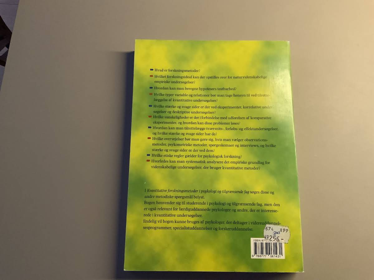 Kvantitative forskningsmetoder i psykologi og tilgrænsende fag.
