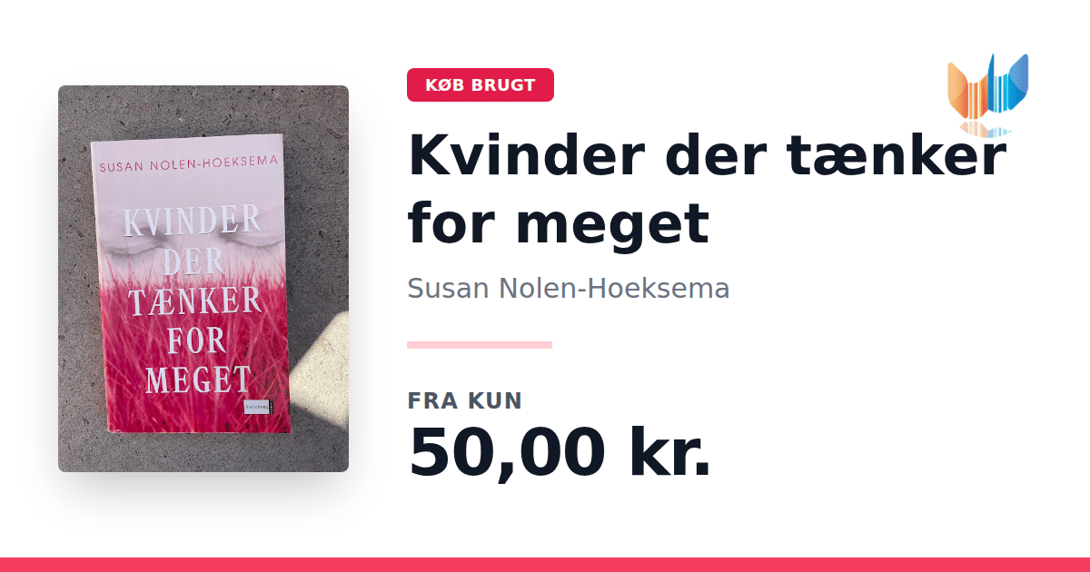 Lige nu kan du købe "Kvinder der tænker for meget" af Susan Nolen-Hoeksema til kun 50,00 kr. Bogen du ser her er brugt, og i god stand. Vi har i øjeblikket 2 eksemplarer til salg af "Kvinder der tænker for meget", så husk at se de forskellige udgaver.