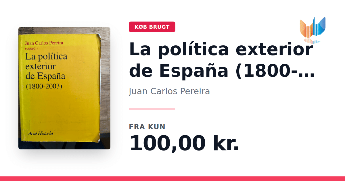 Lige nu kan du købe "La política exterior de España (1800-2003)" af Juan Carlos Pereira til kun 100,00 kr. Bogen du ser her er brugt, og i god stand. Vi har i øjeblikket kun et enkelt eksemplar til salg af "La política exterior de España (1800-2003)", så slå til mens du kan!