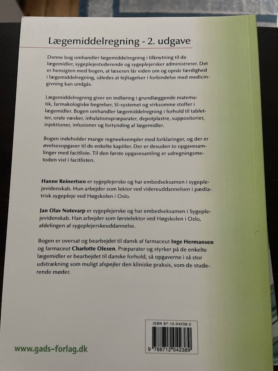 "Lægemiddelregning" af Jan Olav Notevarp og Hanne Reinertsen giver en grundig introduktion til de matematiske principper og farmakologiske begreber, som er essentielle for korrekt medicinadministration. Bogen dykker ned i beregninger vedrørende diverse lægemiddelformer, herunder tabletter, miksturer, depotplastre, inhalationspræparater, injektioner, infusioner samt fortynding af medicin. Med et vægt på praktiske øvelser og eksempler støtter denne 2. udgave studerendes forståelse af lægemiddelberegning og hjælper med at minimere fejl i medicinadministrationen. Bogen henvender sig primært til sygeplejestuderende, men fungerer også fint som et opslagsværk for erfarne sygeplejersker, der ønsker at styrke deres matematiske og farmakologiske kompetencer.