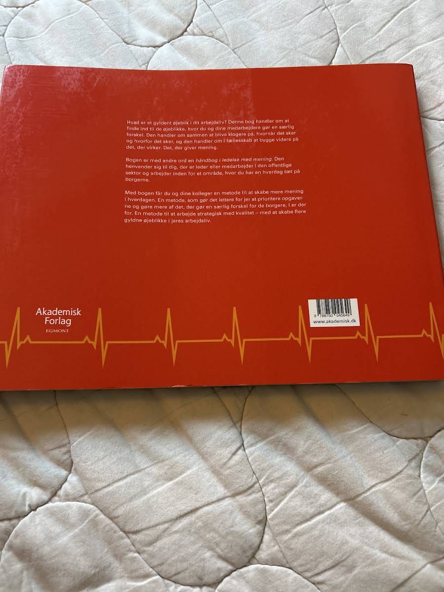 At finde mening i arbejdet handler om at udnytte de gyldne øjeblikke, hvor kerneopgaven træder i fokus, og engagementet stiger. I Lær af de gyldne øjeblikke præsenterer Charlotte Larsen en håndgribelig metode til at klarlægge, hvad der gør en forskel både for borgere og medarbejdere. Metoden bygger på arbejdspladsens sociale kapitel og supplerer med konkrete værktøjer til at forstå, prioritere og udvikle opgaver. Når motivation og arbejdsglæde styrkes, frigøres nye ressourcer, der løfter faglig kvalitet og bidrager til en mere meningsfuld hverdag. Samtidig skaber metoden fælles forståelse, så alle trækker i samme retning mod kerneopgaven. Bogen henvender sig til ledere og medarbejdere i den offentlige sektor, især i borgernære funktioner inden for social-, sundheds- og uddannelsesområdet samt arbejde med børn og unge. Lær af de gyldne øjeblikke er din håndbog i ledelse med mening, der hjælper med at omsætte teori til praksis og styrke både kvalitet og trivsel.