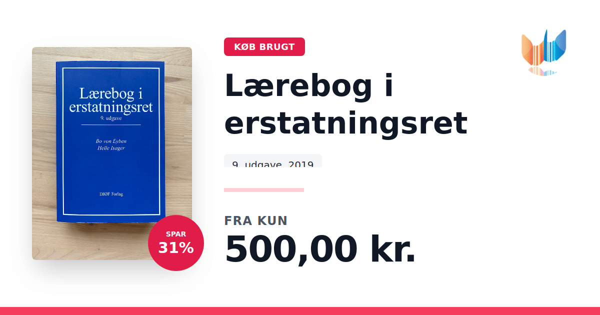 Lige nu kan du købe "Lærebog i erstatningsret" til kun 500,00 kr. Du sparer hele 31% af nyprisen! Bogen du ser her er brugt, og i perfekt stand. Vi har i øjeblikket 2 eksemplarer til salg af "Lærebog i erstatningsret", så husk at se de forskellige udgaver.