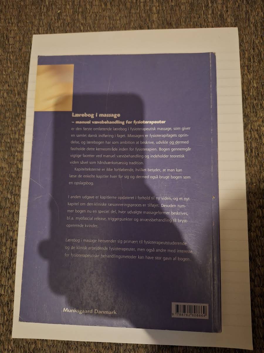 Lærebog i massage – manuel vævsbehandling for fysioterapeuter præsenterer en grundig og opdateret introduktion til terapeutisk massage. I denne anden udgave er indholdet revideret med den nyeste viden og inkluderer et helt nyt kapitel, der giver indsigt i den kliniske ræsonneringsproces, som understøtter beslutninger i det kliniske arbejde. Bogen rummer desuden en særlig sektion, hvor udvalgte massageformer, herunder teknikker som myofascial release, triggerpunkter og arvævsbehandling for brystopererede kvinder, får særlig opmærksomhed. Kapitelstrukturen er udformet således, at de enkelte emner kan læses hver for sig, hvilket giver læseren fleksibilitet og mulighed for at bruge bogen som både en lærebog og et opslagsværk. Lærebogen henvender sig primært til fysioterapeutstuderende og klinisk arbejdende fysioterapeuter, men også andre med interesse for fysioterapeutiske behandlingsmetoder vil få stor gavn af dens indhold.