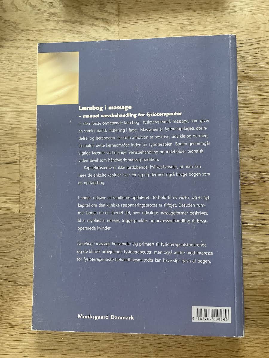 Lærebog i massage – manuel vævsbehandling for fysioterapeuter præsenterer en grundig og opdateret introduktion til terapeutisk massage. I denne anden udgave er indholdet revideret med den nyeste viden og inkluderer et helt nyt kapitel, der giver indsigt i den kliniske ræsonneringsproces, som understøtter beslutninger i det kliniske arbejde. Bogen rummer desuden en særlig sektion, hvor udvalgte massageformer, herunder teknikker som myofascial release, triggerpunkter og arvævsbehandling for brystopererede kvinder, får særlig opmærksomhed. Kapitelstrukturen er udformet således, at de enkelte emner kan læses hver for sig, hvilket giver læseren fleksibilitet og mulighed for at bruge bogen som både en lærebog og et opslagsværk. Lærebogen henvender sig primært til fysioterapeutstuderende og klinisk arbejdende fysioterapeuter, men også andre med interesse for fysioterapeutiske behandlingsmetoder vil få stor gavn af dens indhold.