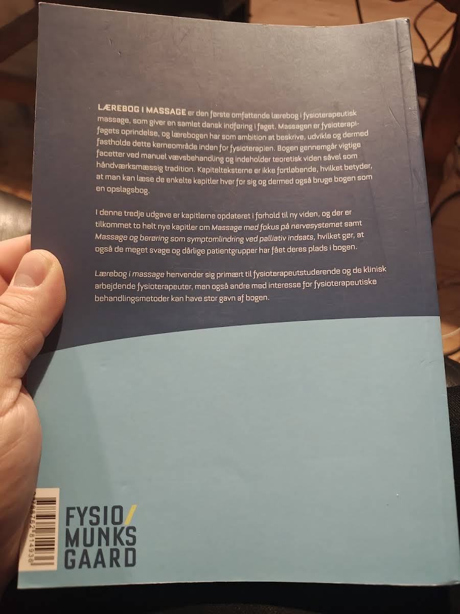 Lærebog i massage fra Munksgaard (2016) er en omfattende grundbog, der giver både teoretisk indsigt og praktisk viden om manuel vævsbehandling. Bogen fokuserer på de centrale aspekter af massage og trækker på årtiers traditioner inden for fysioterapien, hvilket gør den til et uvurderligt redskab for studerende og praktiserende alike. Med opdaterede kapitler baseret på den nyeste viden kombinerer bogen klassiske massageteknikker med moderne forståelser – herunder anvendelsen af neuroaffektiv tilgang og massage som middel til symptomlindring ved særligt udfordrede patientgrupper. Lærebog i massage er derfor ideel til dem, der ønsker at opnå en dybere forståelse for det grundlæggende håndværk bag fysioterapeutiske behandlingsmetoder.