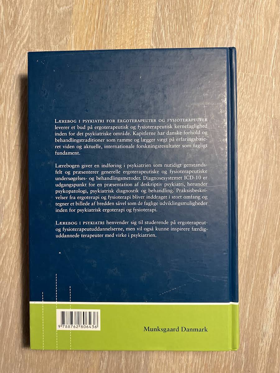 Lærebog i psykiatri for ergoterapeuter og fysioterapeuter introducerer et essentielt grundlag for faglig praksis inden for det psykiatriske felt med konkrete danske forhold og behandlingstraditioner som udgangspunkt. Bogen vægter erfaringsbaseret viden og integrerer aktuelle internationale forskningsresultater for at skabe en solid teoretisk og praktisk forståelse. Med udgangspunkt i ICD-10 præsenterer lærebogen deskriptiv psykiatri, herunder psykopatologi, diagnostik og behandlingsmetoder, der er relevante for ergoterapi og fysioterapi. Gennem praksisbeskrivelser illustreres det alsidige spektrum af metoder og udviklingsmuligheder, hvilket gør bogen til et værdifuldt redskab både for studerende og fagfolk med virke i psykiatrien.