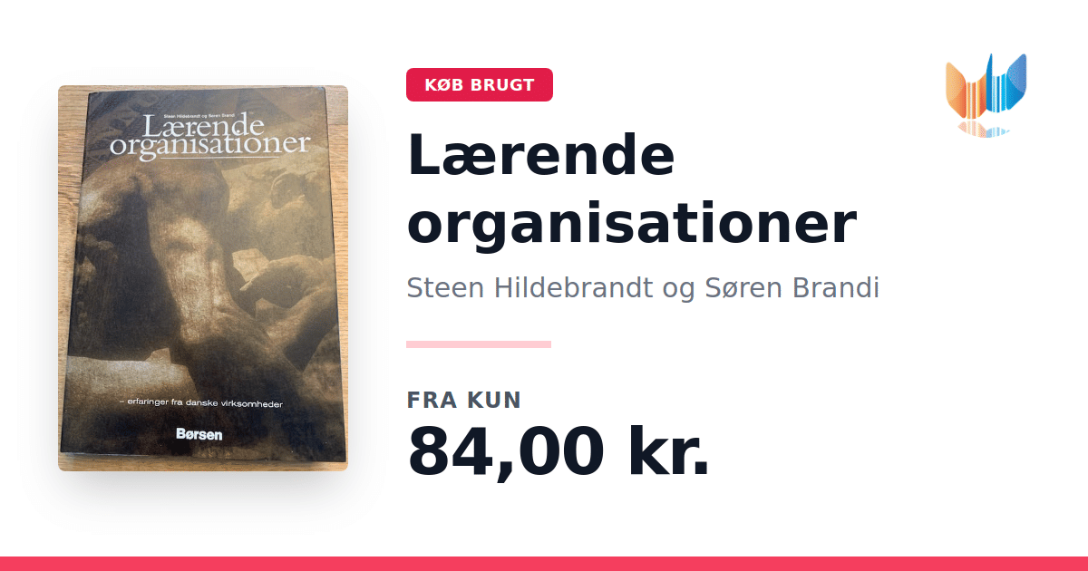 Lige nu kan du købe "Lærende organisationer" af Steen Hildebrandt og Søren Brandi til kun 84,00 kr. Bogen du ser her er brugt, og i perfekt stand. Vi har i øjeblikket kun et enkelt eksemplar til salg af "Lærende organisationer", så slå til mens du kan!