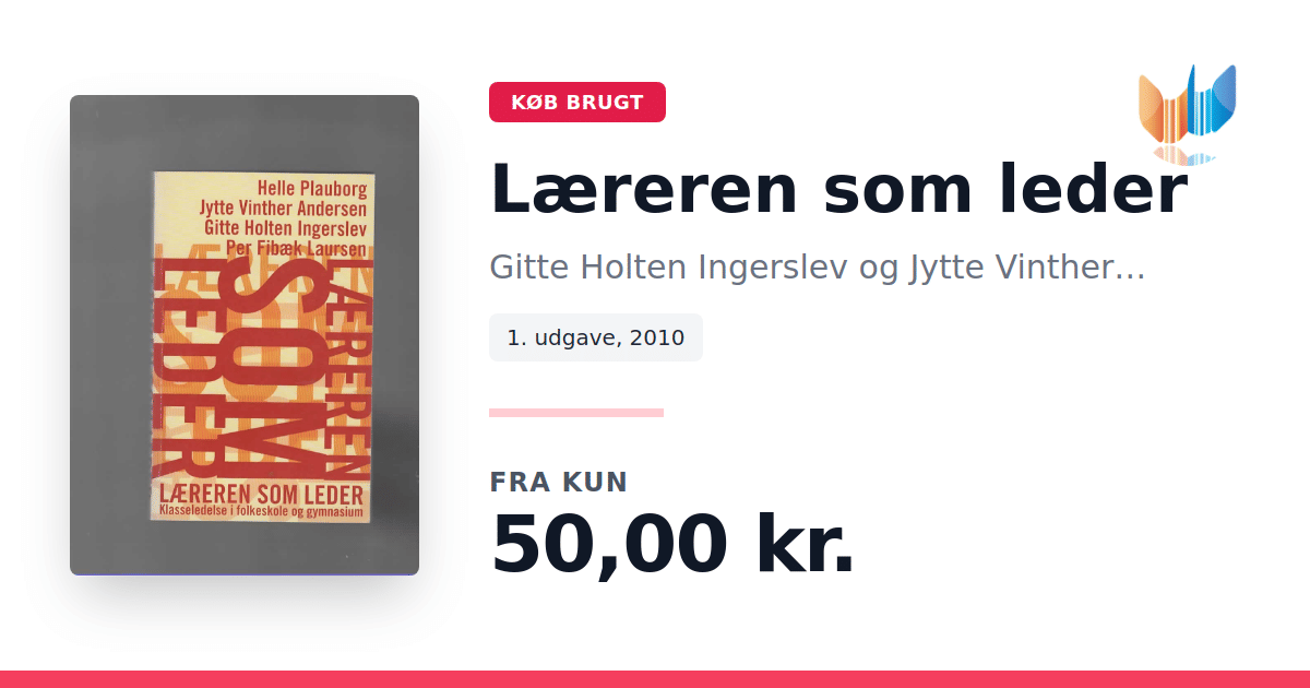 Lige nu kan du købe "Læreren som leder" af Gitte Holten Ingerslev og Jytte Vinther Andersen til kun 50,00 kr. Bogen du ser her er brugt, og i perfekt stand. Vi har i øjeblikket 6 eksemplarer til salg af "Læreren som leder", så husk at se de forskellige udgaver.
