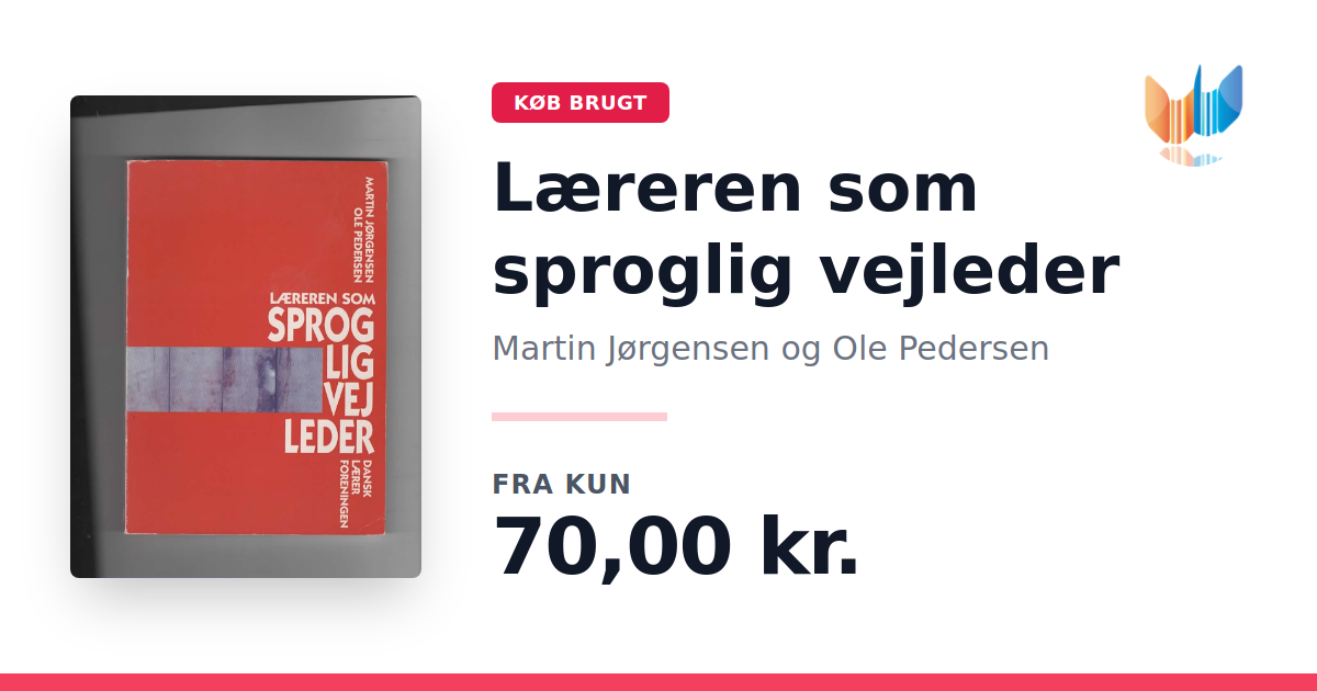 Lige nu kan du købe "Læreren som sproglig vejleder" af Martin Jørgensen og Ole Pedersen til kun 70,00 kr. Bogen du ser her er brugt, og i perfekt stand. Vi har i øjeblikket 6 eksemplarer til salg af "Læreren som sproglig vejleder", så husk at se de forskellige udgaver.