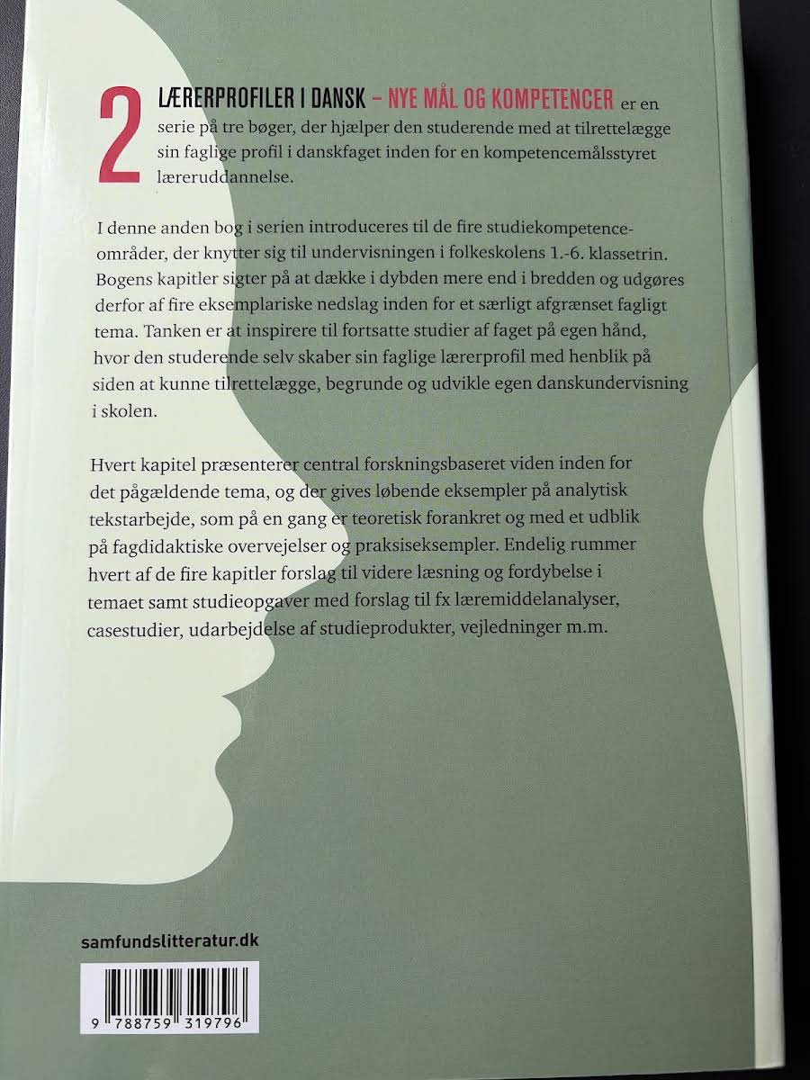 "Lærerprofiler i dansk – 1.-6. klassetrin" er en indledende og struktureret guide for lærerstuderende med fokus på de centrale kompetenceområder i danskundervisningen på de tidlige klassetrin. I første udgave fra 2014 præsenterer Niels Mølgaard et solidt teoretisk fundament, der hjælper med at udvikle evnen til at planlægge, begrunde og videreudvikle egen undervisning. Med en systematisk tilgang kombineres centrale teoretiske redskaber med praktiske eksempler, der tydeliggør, hvordan forskningsbaseret viden kan omsættes til daglig didaktisk praksis. Bogens kapitler rummer både analytisk tekstarbejde og fagdidaktiske overvejelser, der inspirerer til både individuel fordybelse og praktisk anvendelse. Derudover indeholder hvert kapitel forslag til videre læsning og studieopgaver, som bidrager til en helhedsorienteret forståelse af danskfaget. Denne velstrukturerede bog hjælper lærerstuderende med at opbygge en faglig profil, der sikrer en sammenhængende og reflekteret tilrettelæggelse af danskundervisningen i folkeskolen.
