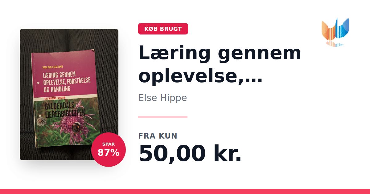 Lige nu kan du købe "Læring gennem oplevelse, forståelse og handling" af Else Hippe til kun 50,00 kr. Du sparer hele 87% af nyprisen! Bogen du ser her er brugt, og i god stand. Vi har i øjeblikket 5 eksemplarer til salg af "Læring gennem oplevelse, forståelse og handling", så husk at se de forskellige udgaver.