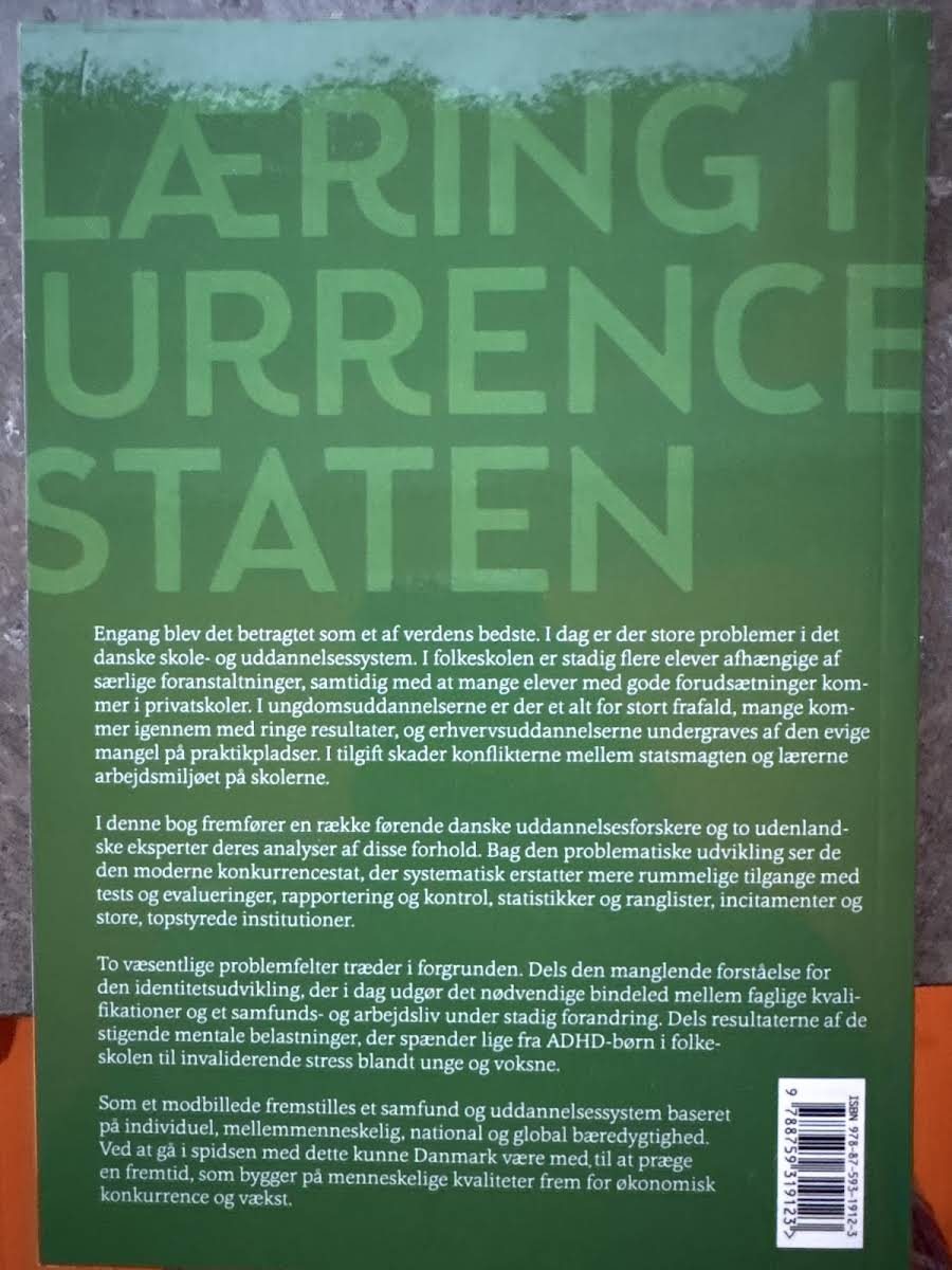 I "Læring i konkurrencestaten" stiller Knud Illeris skarpt på den danske uddannelses udvikling under indflydelse af den moderne konkurrencestat. Med et kritisk blik undersøges, hvordan systematiske tests, evalueringer, kontrol og ranglister er med til at erstatte mere rummelige læringsmodeller, og hvordan denne udvikling undervurderer vigtigheden af identitetsudvikling. Illeris belyser de udfordringer, der opstår, når topstyrede institutioner og standardiserede målemetoder fører til lavere faglige resultater og øget frafald. Gennem en seriøs analyse af systemets svagheder fremlægges forslag til, hvordan en mere bæredygtig tilgang til uddannelse kan skabe bedre forudsætninger for både individets udvikling og et samfund i forandring.
