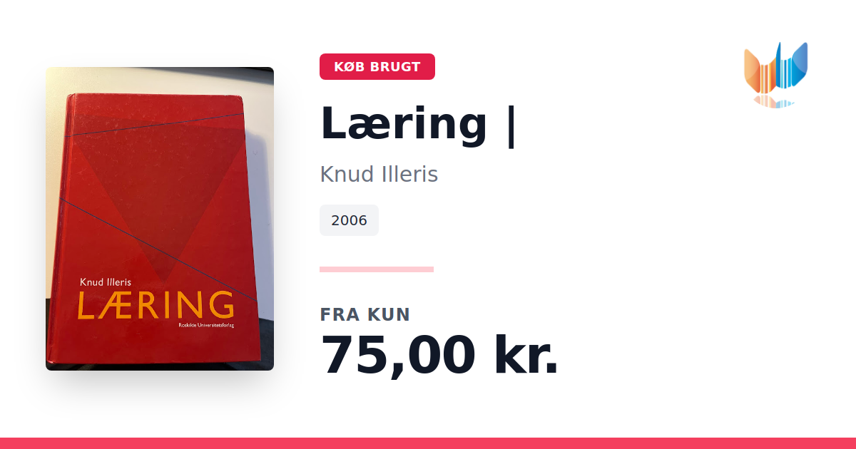 Lige nu kan du købe "Læring |" af Knud Illeris til kun 75,00 kr. Bogen du ser her er brugt, og i god stand. Vi har i øjeblikket 8 eksemplarer til salg af "Læring", så husk at se de forskellige udgaver.