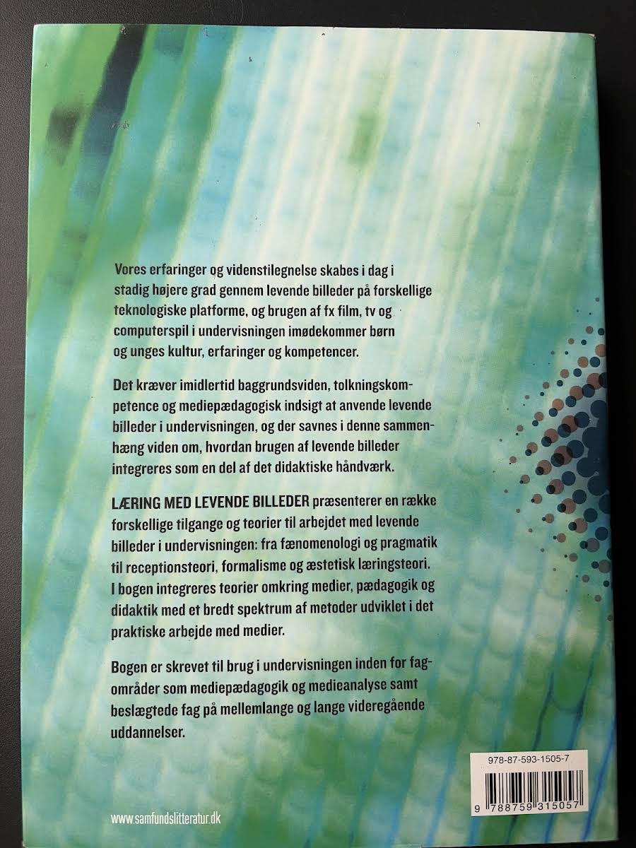 I "Læring med levende billeder" sættes fokus på, hvordan levende billeder – blandt andet film, tv og computerspil – kan integreres i undervisningen og understøtte både kulturforståelse og læring. Bogen reflekterer over, hvordan moderne teknologiske platforme påvirker vores måde at tilegne os viden på og skaber nye muligheder for didaktiske metoder, der imødekommer børn og unges erfaringer og kompetencer. Gennem et bredt teoretisk udsnit, der spænder fra fænomenologi og receptionsteori til pragmatik, formalisme og æstetisk læringsteori, kombinerer bogen medier, pædagogik og didaktik i praksis. Den præsenterer en række metoder og tilgange, der kan anvendes i undervisningen, og giver dermed et solidt redskab til fagområder som mediepædagogik og medieanalyse på mellemlange og lange videregående uddannelser.