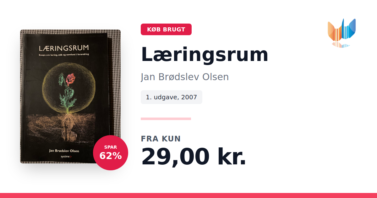 Lige nu kan du købe "Læringsrum" af Jan Brødslev Olsen til kun 29,00 kr. Du sparer hele 62% af nyprisen! Bogen du ser her er brugt, og i god stand. Vi har i øjeblikket kun et enkelt eksemplar til salg af "Læringsrum", så slå til mens du kan!