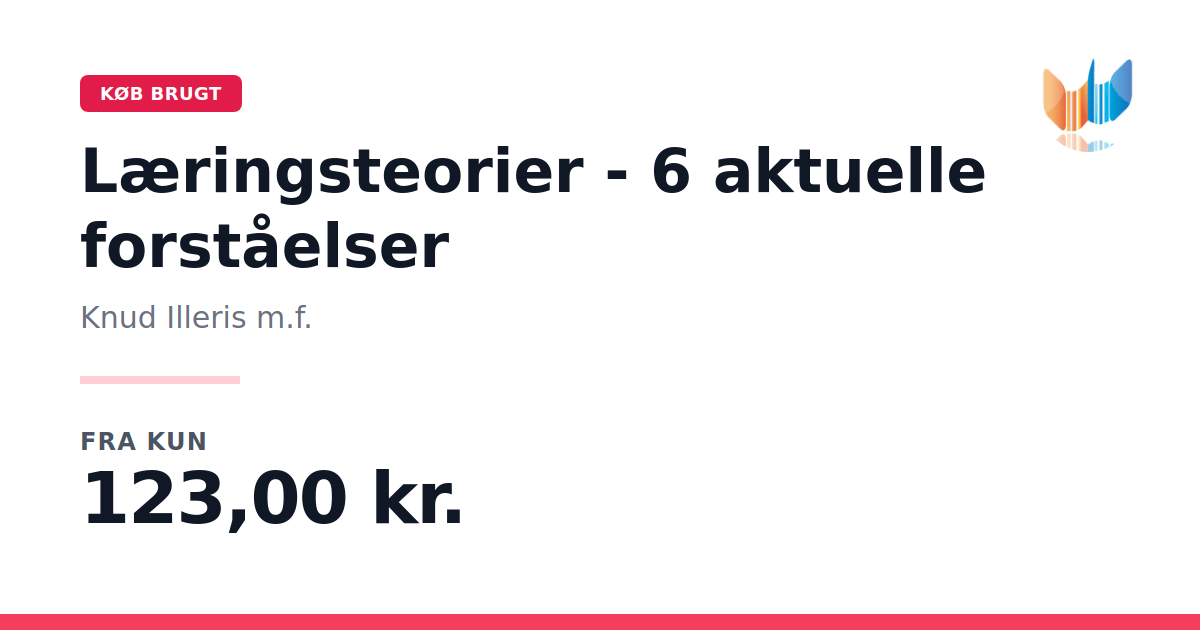 Lige nu kan du købe "Læringsteorier - 6 aktuelle forståelser " af Knud Illeris m.f. til kun 123,00 kr. Bogen du ser her er brugt, og i god stand. Vi har i øjeblikket kun et enkelt eksemplar til salg af "Læringsteorier - 6 aktuelle forståelser ", så slå til mens du kan!