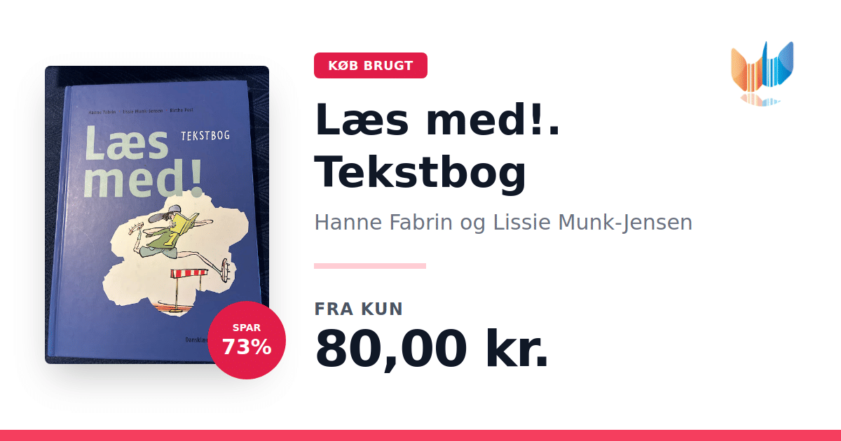 Lige nu kan du købe "Læs med!. Tekstbog" af Hanne Fabrin og Lissie Munk-Jensen til kun 80,00 kr. Du sparer hele 73% af nyprisen! Bogen du ser her er brugt, og i god stand. Vi har i øjeblikket 2 eksemplarer til salg af "Læs med!. Tekstbog", så husk at se de forskellige udgaver.