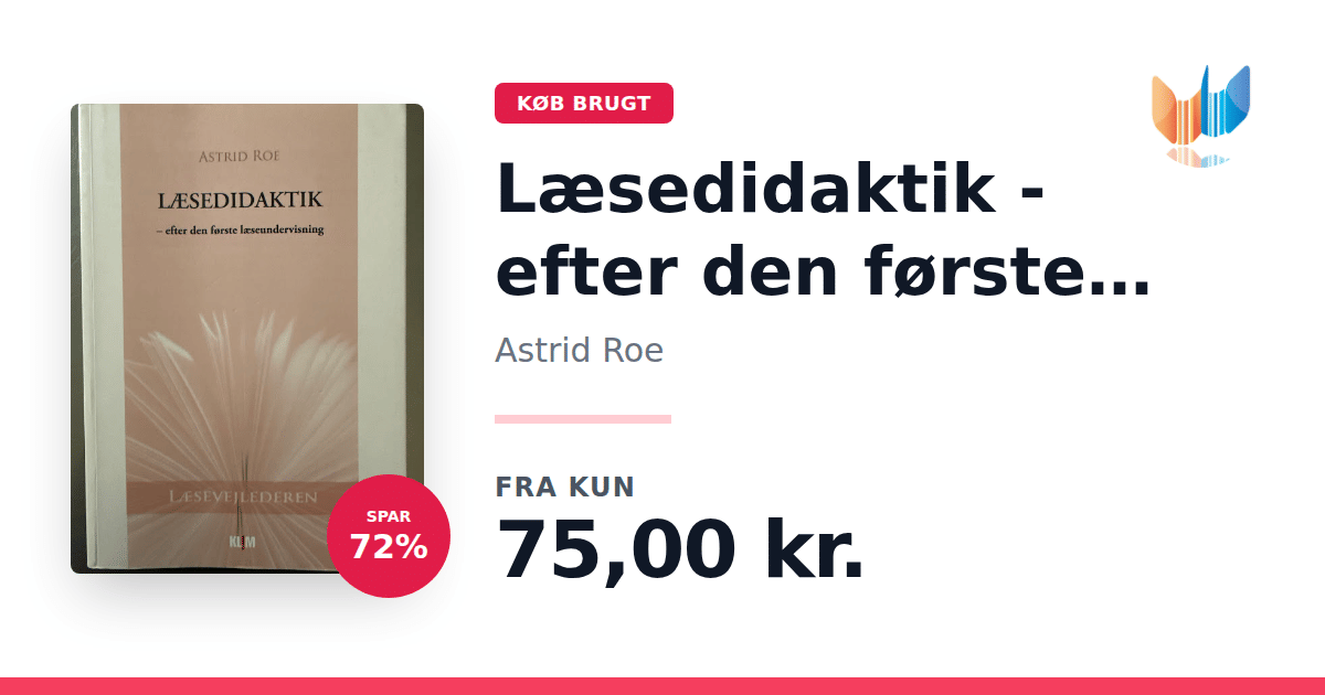 Lige nu kan du købe "Læsedidaktik - efter den første læseundervisning" af Astrid Roe til kun 75,00 kr. Du sparer hele 72% af nyprisen! Bogen du ser her er brugt, og i perfekt stand. Vi har i øjeblikket 3 eksemplarer til salg af "Læsedidaktik - efter den første læseundervisning", så husk at se de forskellige udgaver.