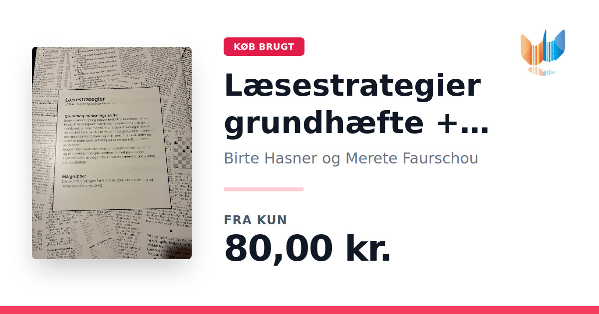 Lige nu kan du købe "Læsestrategier grundhæfte + løsningshæfte" af Birte Hasner og Merete Faurschou til kun 80,00 kr. Bogen du ser her er brugt, og i god stand. Vi har i øjeblikket kun et enkelt eksemplar til salg af "Læsestrategier grundhæfte + løsningshæfte", så slå til mens du kan!
