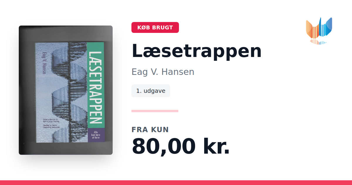 Lige nu kan du købe "Læsetrappen" af Eag V. Hansen til kun 80,00 kr. Bogen du ser her er brugt, og i perfekt stand. Vi har i øjeblikket kun et enkelt eksemplar til salg af "Læsetrappen", så slå til mens du kan!