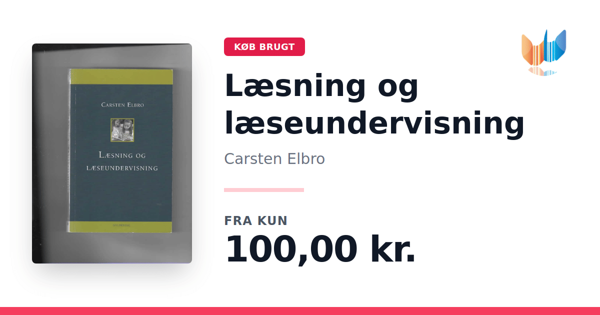 Lige nu kan du købe "Læsning og læseundervisning" af Carsten Elbro til kun 100,00 kr. Bogen du ser her er brugt, og i perfekt stand. Vi har i øjeblikket kun et enkelt eksemplar til salg af "Læsning og læseundervisning", så slå til mens du kan!
