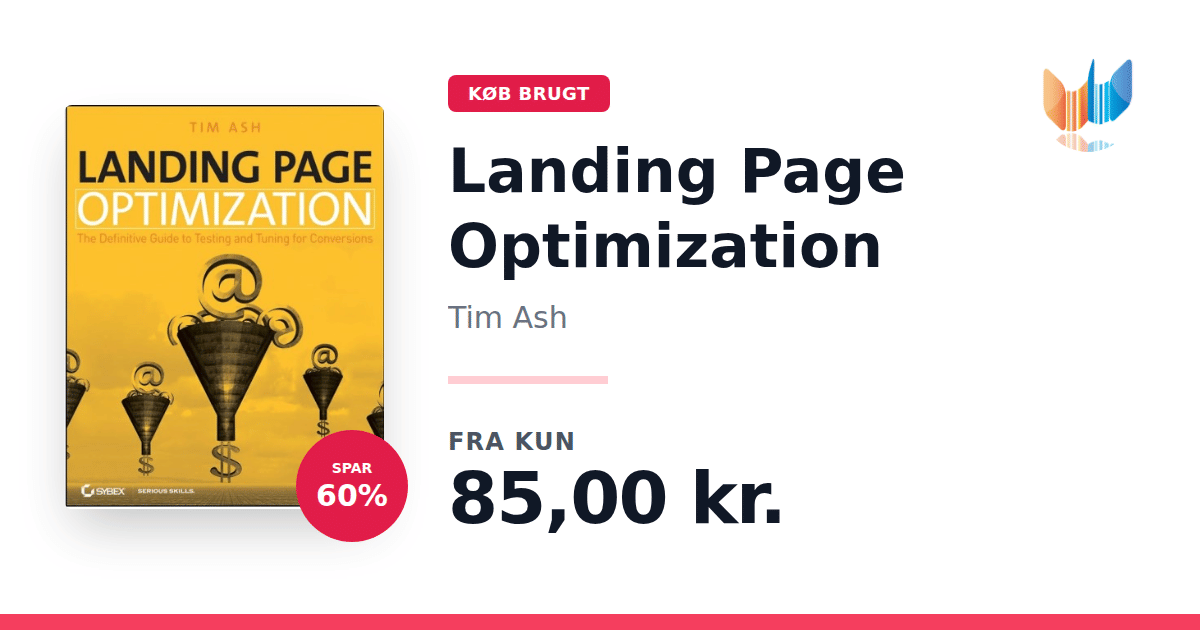 Lige nu kan du købe "Landing Page Optimization" af Tim Ash til kun 85,00 kr. Du sparer hele 60% af nyprisen! Bogen du ser her er brugt, og i perfekt stand. Vi har i øjeblikket kun et enkelt eksemplar til salg af "Landing Page Optimization", så slå til mens du kan!