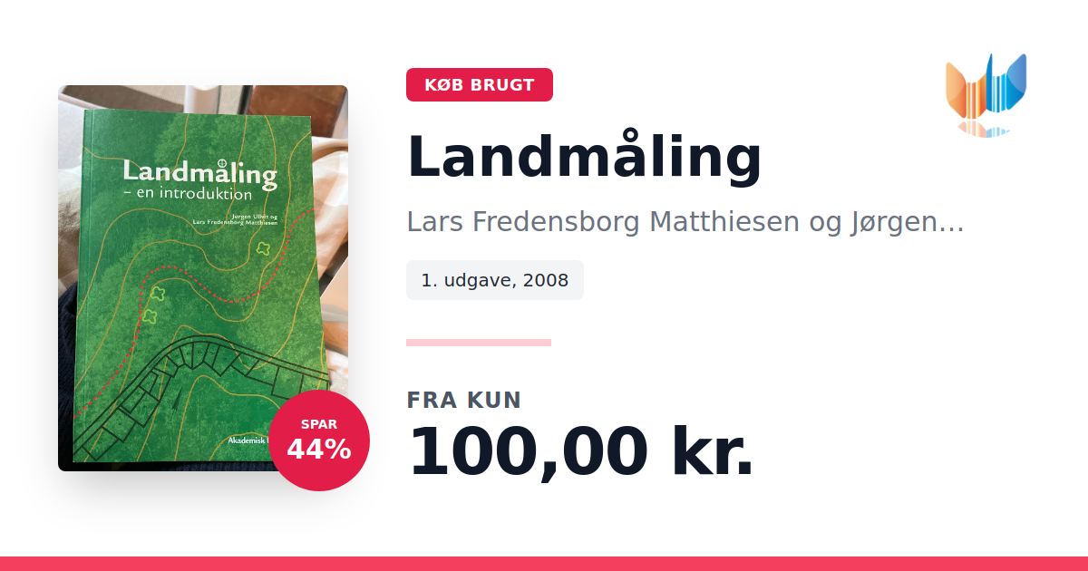 Lige nu kan du købe "Landmåling" af Lars Fredensborg Matthiesen og Jørgen Ullvit til kun 100,00 kr. Du sparer hele 44% af nyprisen! Bogen du ser her er brugt, og i perfekt stand. Vi har i øjeblikket 2 eksemplarer til salg af "Landmåling", så husk at se de forskellige udgaver.