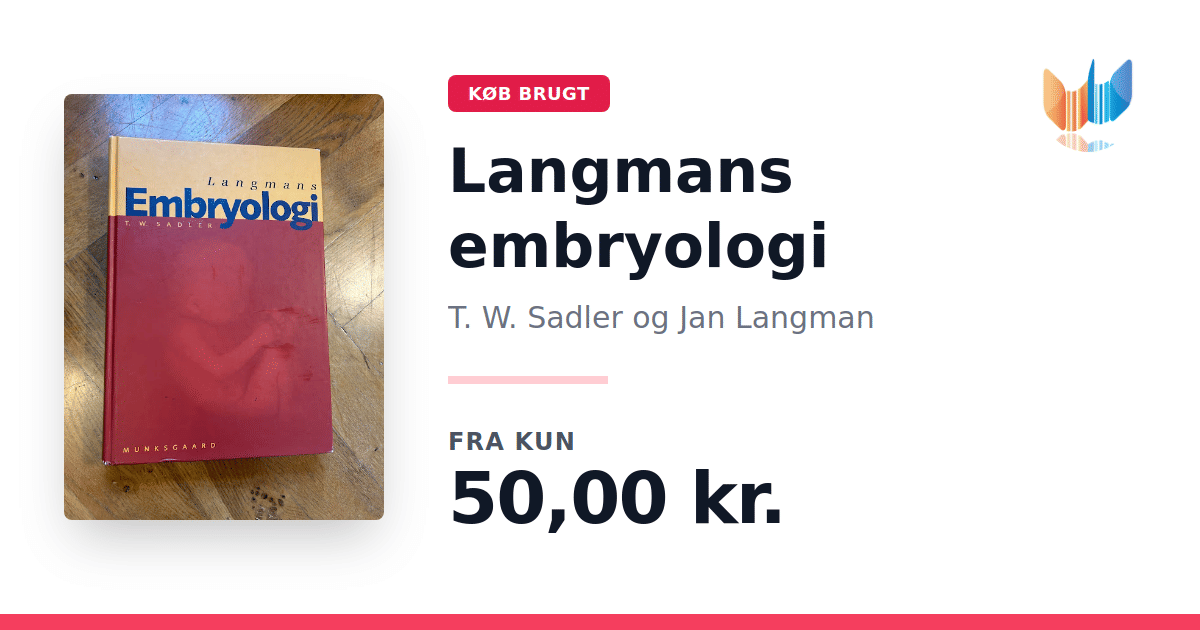 Lige nu kan du købe "Langmans embryologi" af T. W. Sadler og Jan Langman til kun 50,00 kr. Bogen du ser her er brugt, og i god stand. Vi har i øjeblikket 5 eksemplarer til salg af "Langmans embryologi", så husk at se de forskellige udgaver.