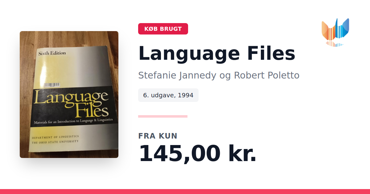 Lige nu kan du købe "Language Files" af Stefanie Jannedy og Robert Poletto til kun 145,00 kr. Bogen du ser her er brugt, og i perfekt stand. Vi har i øjeblikket kun et enkelt eksemplar til salg af "Language Files", så slå til mens du kan!