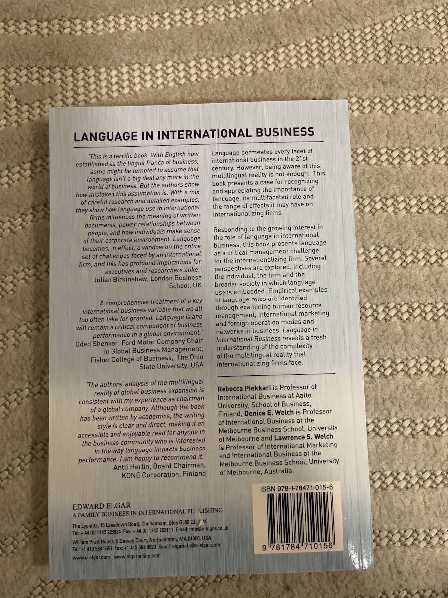 Language plays a fundamental role in shaping international business, and Language in International Business examines this intricate relationship with clarity and depth. The book explores how multilingual environments influence management practices, marketing strategies, human resource management, and the operational modes of globally expanding firms. Drawing on empirical examples, the authors consider language from multiple perspectives - the individual, organizational, and societal levels. Their analysis reveals not only the challenges of translation and communication but also the opportunities that arise from understanding language as a strategic asset in the complex realm of international business.