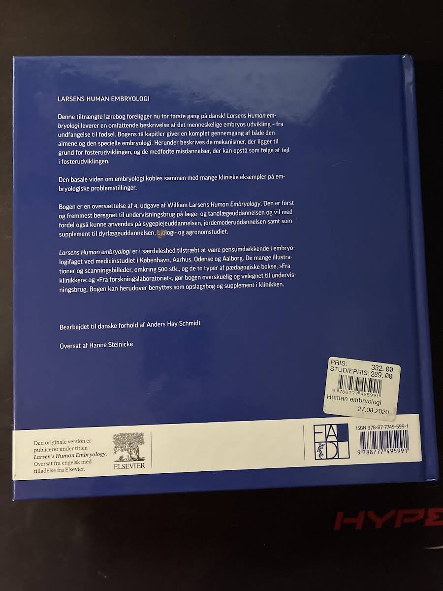 Denne lærebog tilbyder nu en første dansk udgave af Larsens Human embryologi og præsenterer en grundig gennemgang af udviklingen af det menneskelige embryo – lige fra undfangelsen til fødslen. Med et solidt fundament inden for deskriptiv, klinisk, genetisk og molekylær biologi kombineres basale embryologiske principper med illustrative kliniske eksempler, der illustrerer embryologiske problemstillinger. Bogen indeholder et væld af illustrationer og fotografier, som gør komplekse emner lettere tilgængelige og forståelige. Denne udgave af Larsens Human embryologi er en essentiel ressource, der dækker det nødvendige pensum for medicinstudiet og tjener som et uundværligt værktøj både for studerende og fagfolk.