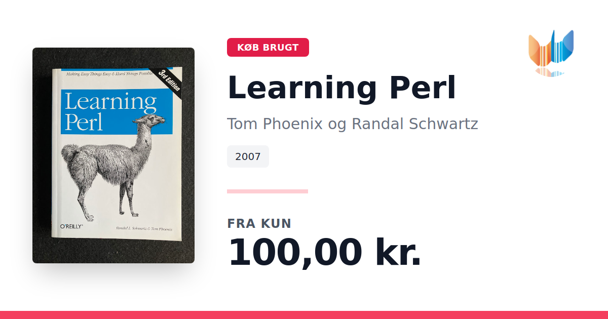 Lige nu kan du købe "Learning Perl" af Tom Phoenix og Randal Schwartz til kun 100,00 kr. Bogen du ser her er brugt, og i perfekt stand. Vi har i øjeblikket kun et enkelt eksemplar til salg af "Learning Perl", så slå til mens du kan!